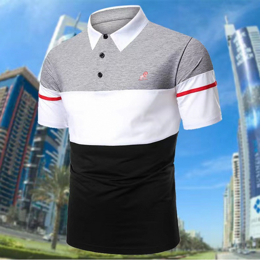Casual Patchwork Contrast Stripe Short Sleeve Lapel Polo Shirt