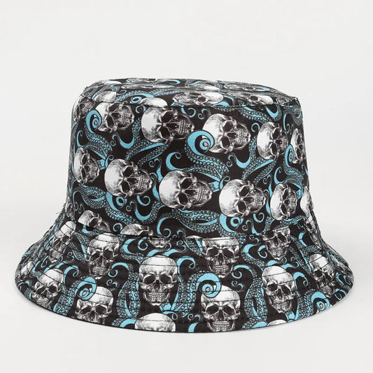 Fashion Creative Skull Rose Print Sunscreen Sunshade Double-Sided Fisherman Hat