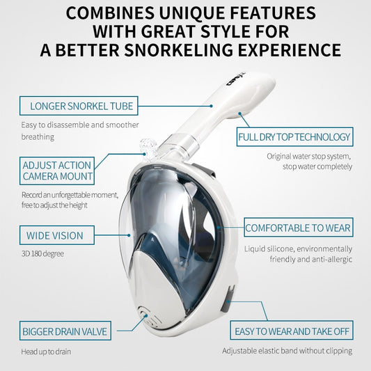 Full Face Scuba Diving Anti Fog Goggles With Camera Mount Underwater Wide View Snorkel Mask