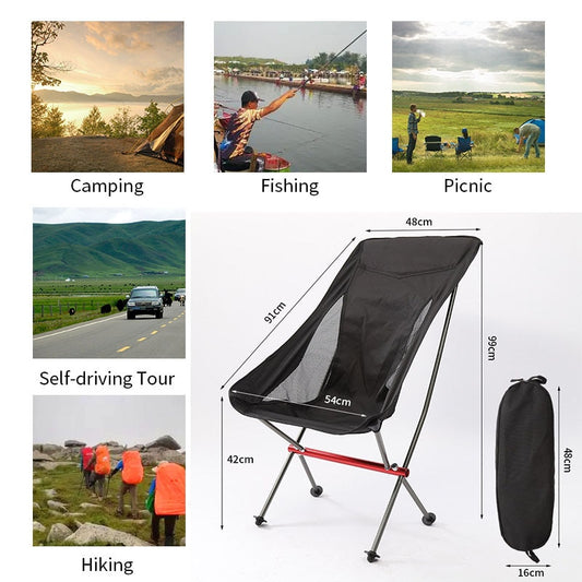 Portable Collapsible Moon Chair Fishing Camping BBQ Stool Folding Extended Hiking Seat Garden Ultralight Office Home Furniture
