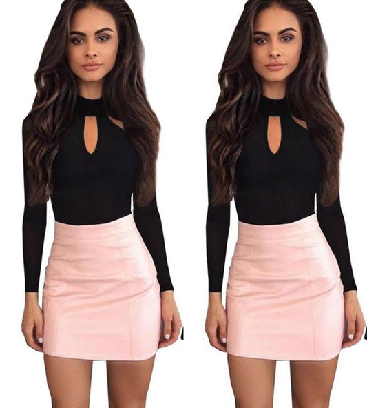 Black Cutout Long Sleeve Slim Sexy Solid Color Jumpsuit