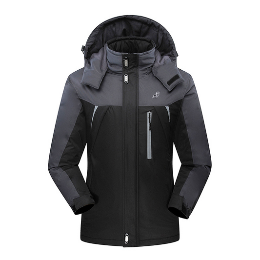 Long Sleeve Fleece-Lined Keep Warm Pocket Design Hooded Detachable Zipper Color Blocking Jacket