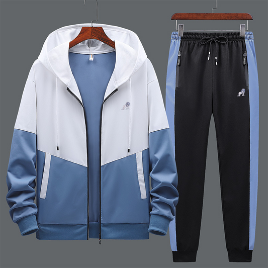 Casual Hooded Long-Sleeved Color-Block Sports Jacket