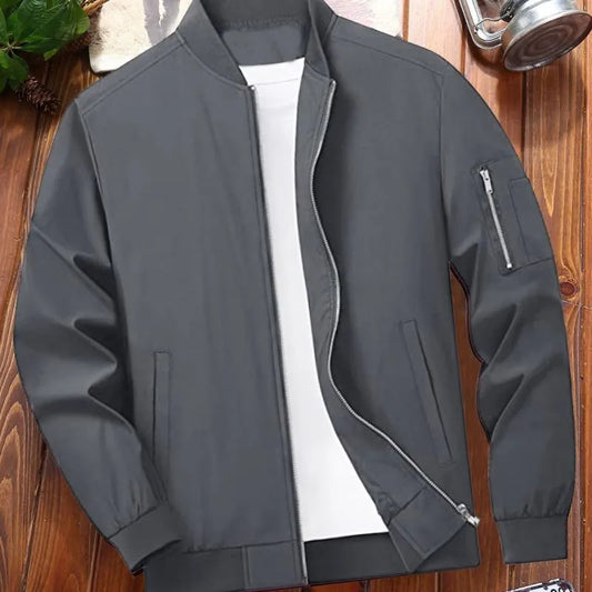 Men Spring Autumn Fashion Casual Business Solid Color Zipper Stand Collar Long Sleeve Plus Size Jacket