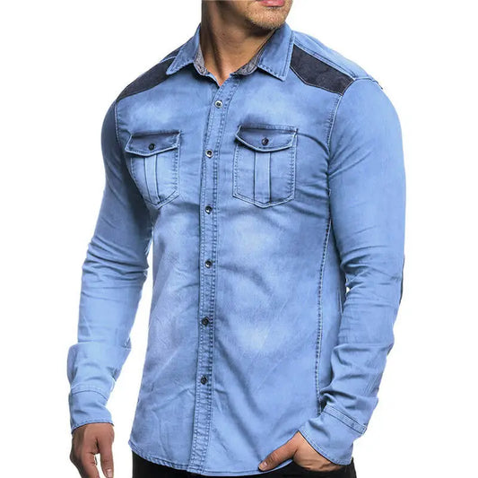 M-3XL Men Fashion Solid Color Multi-Pocket Long Sleeve Denim Jacket