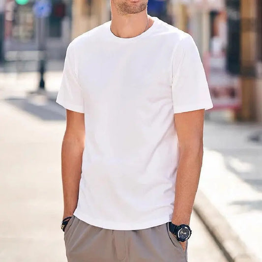 Men Casual Round Neck Solid Color Short-Sleeved T-Shirt