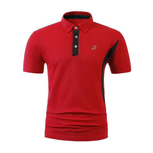 Men Business Casual Stitching Color Block Short-Sleeved Lapel Polo Shirt