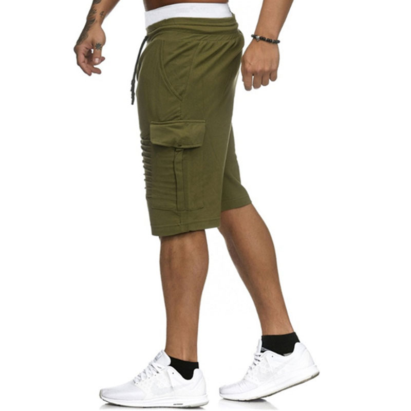 M-3XL Men Casual Pocket Patchwork Drawstring Crease Sports Shorts