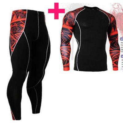Men 3D Prints Compression Shirts T-shirt Long Sleeves With Pants
