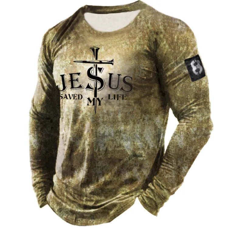 Men Plus Size Casual Long Sleeve Round Neck Graphic Printed T-Shirt